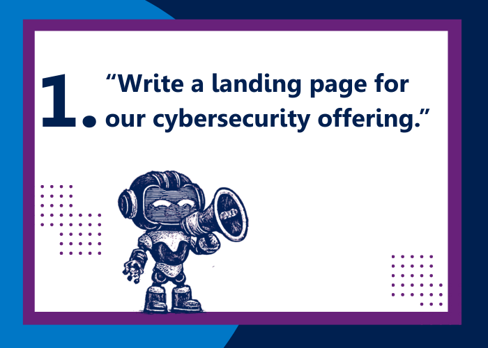 It sounds polished. It also sounds exactly like everyone else. Without a defined audience (CISO at a mid-market healthcare system?) and a defined buyer stage (awareness vs. evaluation?), AI can’t differentiate. It can only generalize.