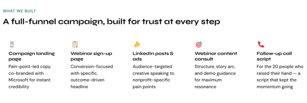 So we built the entire campaign around four things nonprofits actually lose sleep over: We went back to fundamentals: What do nonprofit people actually lose sleep over? Not AI capabilities. Not Microsoft licensing. This: