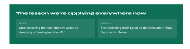 Our approach: Stop selling the tech. Start speaking to the exhaustion.